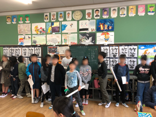 4月から委員会活動に取り組むことことになる4年生に5年生がその内容を教えています。4年生の教室の後ろには5年生が発表の順番を待っています。