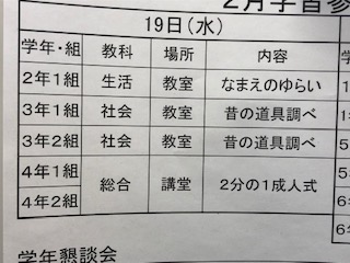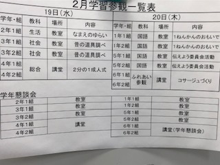 2月19日と20日は今年度最後の学習参観・懇談会です。