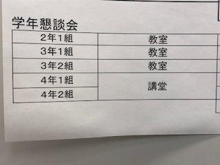 本日19日(水)は、2年生・3年生・4年生となっております。教科と場所をご確認ください。