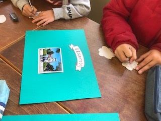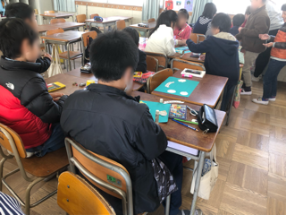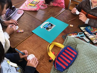 たてわり班活動では、卒業生に贈るプレゼントを1年生から5年生の子どもたちが心を込めて作っていました。