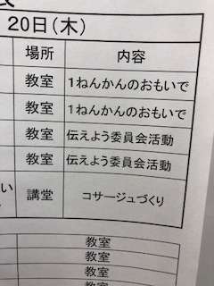 本日 20日(木)は1年生・5年生・6年生の学習参観・懇談会です。6年生は両方とも講堂で行います。
