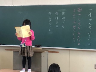 1年生は入学してから1年間の思い出を作文にまとめて一人ずつ発表しました。