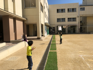 1年生がたこあげを楽しんでいます。2人で協力してあげている姿がたくさん見られました。