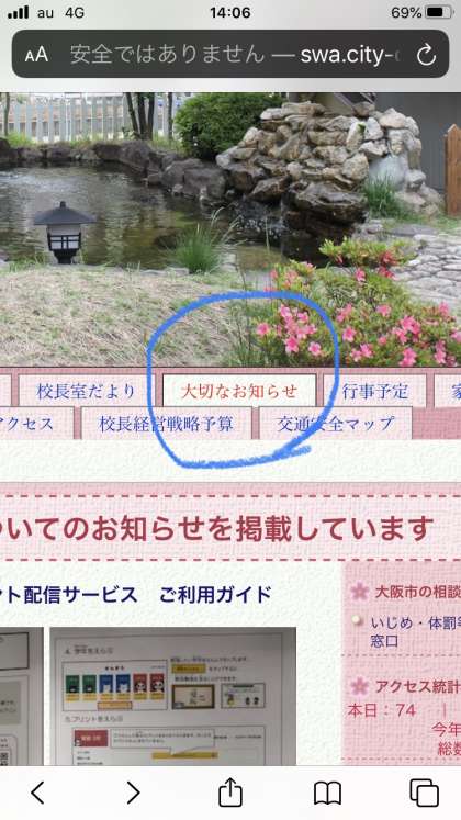1.ホームページの「大切なお知らせ」の項目をクリックします。