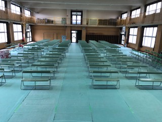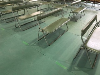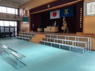 卒業式の会場の準備が大方終わりました。卒業生の席の間隔は例年よりも広く開けています。