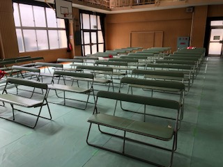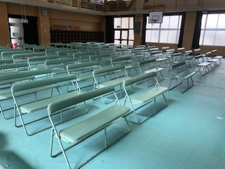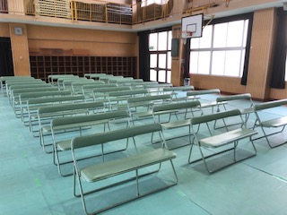 保護者の皆も参加されますので保護者席も児童数分を用意しております。並べ方や間隔などは今後変更する場合もありますのでご了承ください。