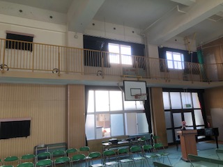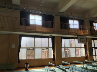 講堂の上側の窓は式の間、開放したままとなります。下側の窓は式の途中で一度開放します。