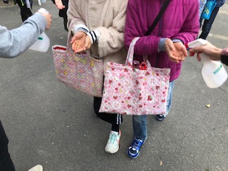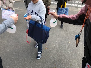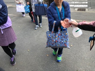 昨日の登校日も今日の修了式も登校時に玄関で手のアルコール消毒を行いました。