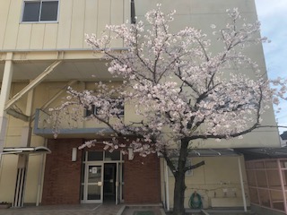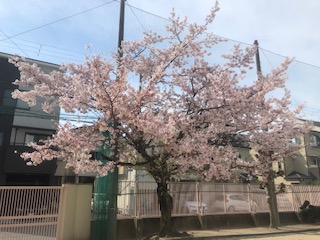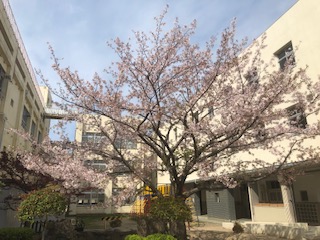 おおすみにししょうがっこうにある さくらも まんかいになって 1ねんせいのみなさんの にゅうがくを おいわいしています。
