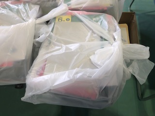 教科書や教材はビニール袋(スーパーの袋の形態)に入れて学年ごとに並べています。配布する手紙等は紙の封筒でお渡しします。