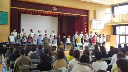 コーラス発表では、本校6年生の出場を希望した子どもたちと地域の方(大人)の合同グループで出場しました。「カントリーロード」「雪だるまつくろう」「Let it Go〜ありのままで〜」の3曲を熱唱しました。みごとなコーラスでした。パチパチパチ!