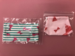 登校した5年生と6年生にマスクが配られました。色柄のマスクは教職員の手作り、白いマスクは政府から配布されたものです。他の学年の児童にも登校日に渡していきます。