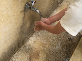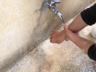 あさがおの種まきの後は石けんでていねいに手を洗いました。