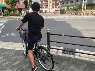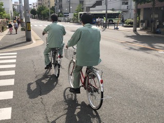 朝の登校時間には安全な登校のため、教職員が自転車などで巡回をしています。