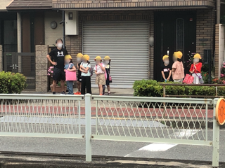 下校する方面別に集団で教職員が付き添って帰りました。自転車で巡回をする教職員もいます。