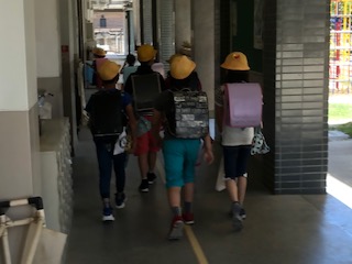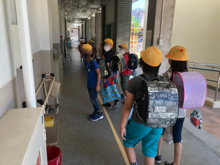 午前の部の子どもたちが給食を食べた後に下校していきます。