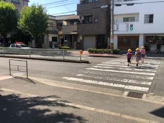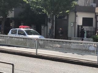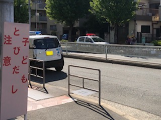 午後の部の子どもたちが下校していきます。今日もパトカーが止まって見守りをしておられました。青パトも巡回していました。