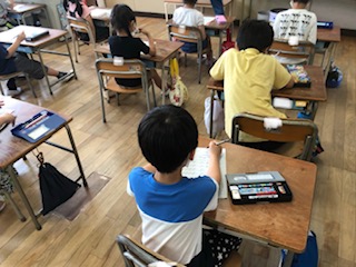 分散しての学習も今日が最後です。この期間にひらがなや数なども進みました。