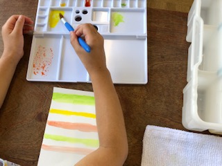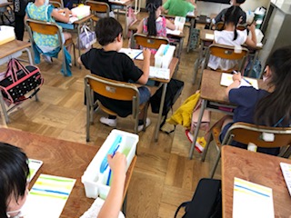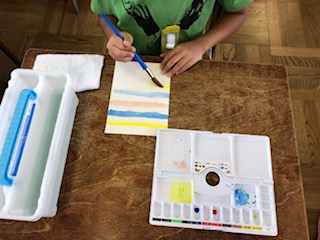 絵の具の使い方を学び、ていねいに描いています。(6月24日の授業です)