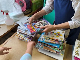 返却された本はウイルス対策としてしばらく置いた後に貸し出しをするようにしています。その期間に子どもたちが借りたい時は消毒をしてから貸し出しています。