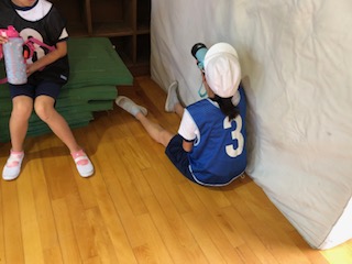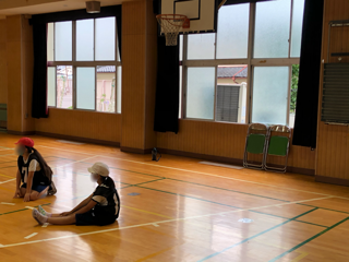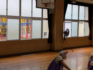 感染防止と熱中症防止のため、体育館の窓を開けて行い、水分補給の時間も設けています。終了後の手洗いの指導も進めています。(写真は6年生の体育の授業)