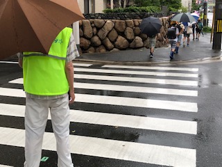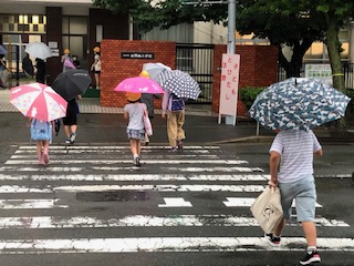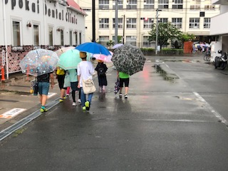子どもたちが登校する頃には雨も小降りになっていました。本日も老人会を始め地域の方が見守りをしておられました。ありがとうございます。
