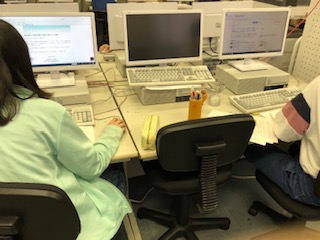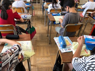 家庭科で裁縫をしています。パソコンで地球の環境について調べる学習もしています。