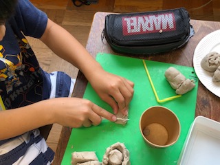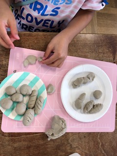 粘土でおいしそうなごちそうが作られています。