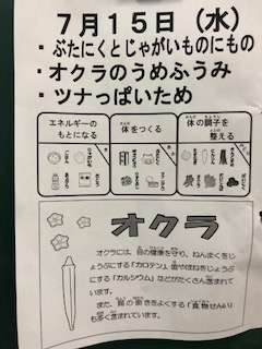 今日の給食にはオクラがでました。