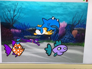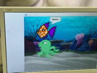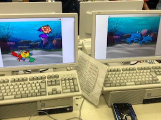 実際にはこの絵のキャラクターは、子どもたちが組んだプログラムにしたがって動いています。