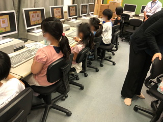2年生はマウスの使い方などのパソコンの基本的な使い方を学びました。ICT支援員の方も子どもたちを支援されています。