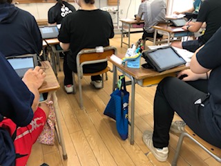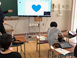 オンラインでの授業や連絡などのICT支援について教職員が研修を行っています。ICT支援員の方から説明を受けています。