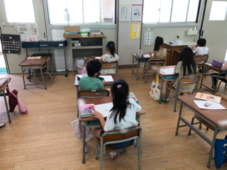 国語の学習単元の一つが終わり、学習内容の定着について確かめるためのプリントに取り組みました。プリントを早く仕上げた児童は本を読んでいます。