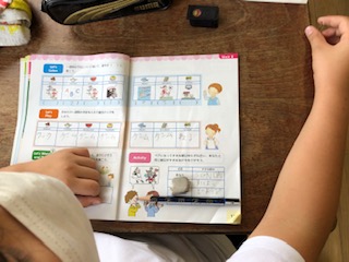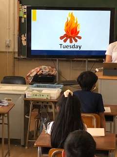 今日は終業式ですが、午前中は学習や学級活動を行います。4年生の外国語活動では復習を兼ねて曜日の言い方などをゲームで楽しく進めました。