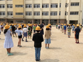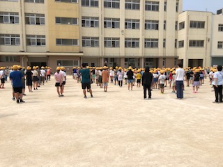 給食の後にそうじなどを行い、1学期の終業式を子どもたちの間隔を開けて行いました。
