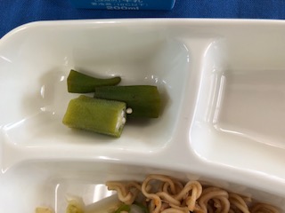 今日の給食には夏野菜のオクラが出ました。