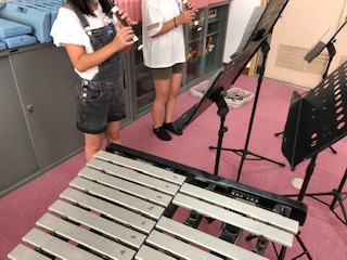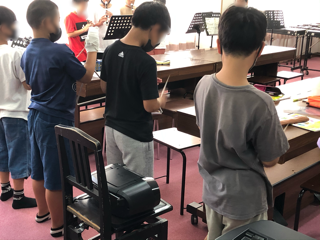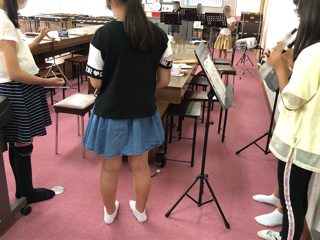 合奏に取り組んでいます。コロナ感染防止の観点から、子どもたちは向き合わずに真ん中を向いて演奏しています。