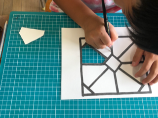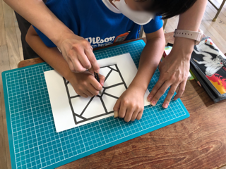 カッターナイフを使って紙を切る活動を行いました。安全面や刃の当て方などを細かく指導しています。