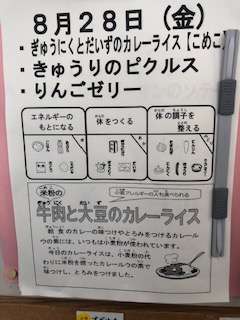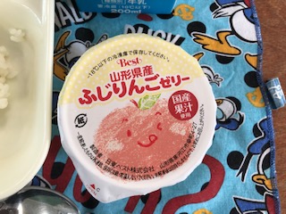 今日のカレーライスは米粉を使ったカレールーで味付けされ、大豆も入っていました。りんごゼリーもつきました。