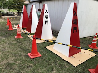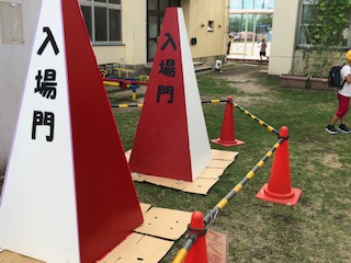 10月4日の運動会に向けて準備が進められています。中庭では入場門と退場門の整備を行っています。