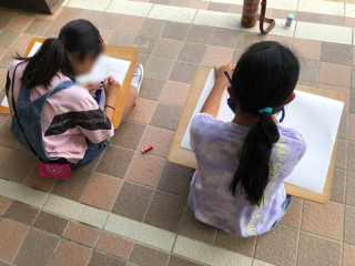 6年生が校内で写生をしています。(8月31日に撮影しています)
