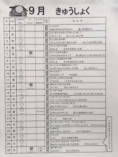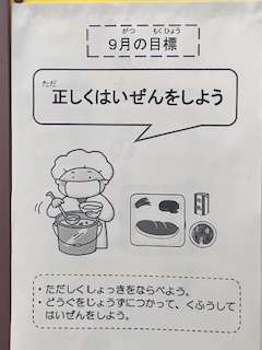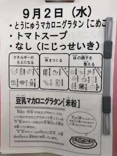 教室には、毎月の給食目標や献立一覧、その日の献立・栄養の知識などが掲示されています。