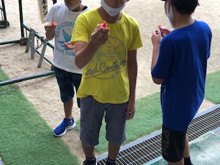 春から育ててきたにんじんやすいかを収穫しました。(飼育栽培委員会)