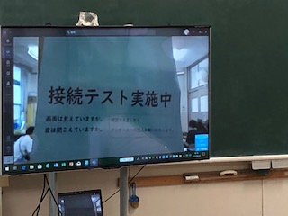 明日・5日に、学校とご家庭とを結んで双方向通信システムTeamsの接続テストを行います。本日の放課後に教員が事前の接続テストを行いました。