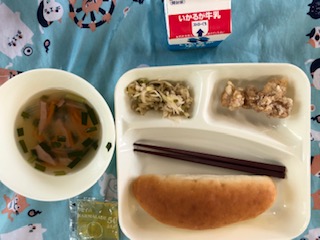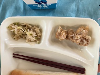 中華スープには冬瓜が入っています。子どもたちが大好きな唐揚げもでました。