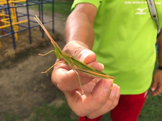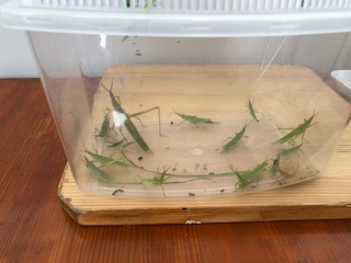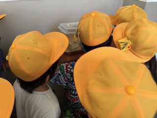 この時期は学習園などで昆虫を見つけることができます。教員が見つけたり、1年生が学習園で探したりしてバッタやコウロギをつかまえてケースに入れました。1年生が興味いっぱいで観察しています。