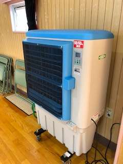 少しでも涼しく 体育館に冷風機