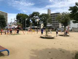はじめに瑞光寺公園へ行きました。水筒のお茶も飲みながら楽しく遊びました。