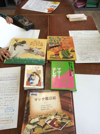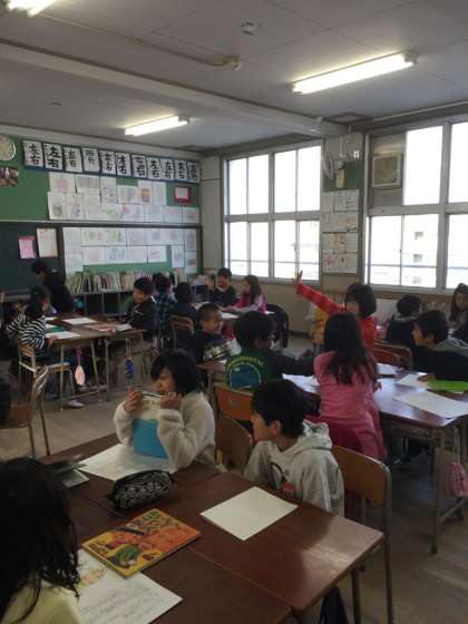 家族やふるさとをテーマにした本を選び、「ミニビブリオバトル」に挑戦しました。3分間、本について語り、質問を受けます。一番人気の本が「チャンプ本」に選ばれました。