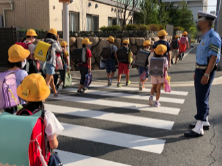秋の交通安全週間が始まっています。今日は、横断歩道などに警察官、地域、保護者の方が立っておられました。教職員も交差点に立ったり巡回を行ったりしています。